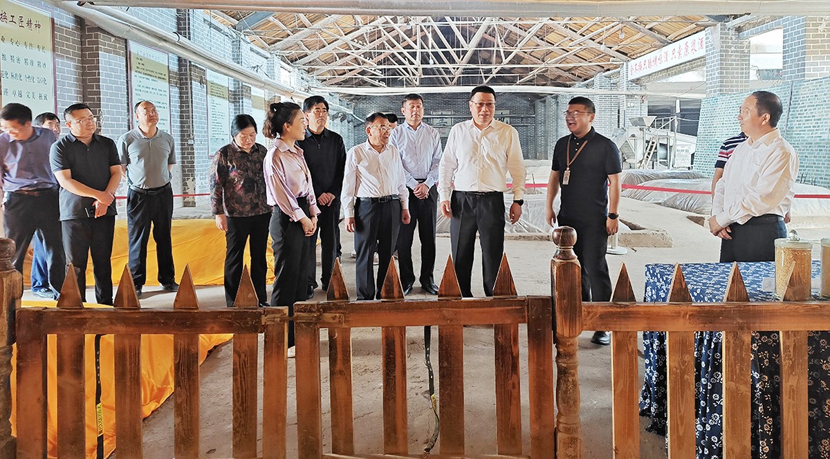 湯涌主席一行查看了金不換文化展示區(qū)、藏酒區(qū)、銷售展廳、明清窖池群和亳酒城市會(huì)客廳。金不換白酒集團(tuán)黨委書記、總裁支濤介紹了近階段企業(yè)生產(chǎn)、經(jīng)營(yíng)情況和未來發(fā)展規(guī)劃。