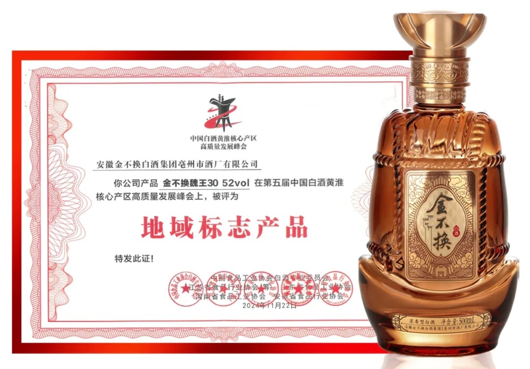 峰會由中國食品工業(yè)協(xié)會及蘇、魯、豫、皖四省食品工(行)業(yè)協(xié)會主辦,21位國家級白酒評委對黃淮產(chǎn)區(qū)主流酒企產(chǎn)品鑒評,金不換·魏王30與古井、迎駕、洋河等榮獲黃淮核心產(chǎn)區(qū)“地域標(biāo)志產(chǎn)品”。這是繼金不換·厚道、金不換·復(fù)興20后,金不換酒又一次蟬聯(lián)黃淮核心產(chǎn)區(qū)“地域標(biāo)志產(chǎn)品”。